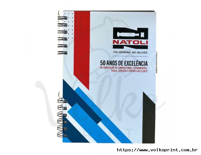 Caderno Fotolux laminação fosca. Miolo branco pautado sem marca d'agua com 96 folhas, 192 paginas, incluso adicional 8 paginas iniciais sendo: Dados pessoais, calendário, planejamento anual e trimestral. Fechamento wire-o. Incluso Personalização em impressão ate 04 cores na capa e contra capa.